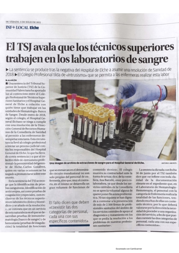 La sentencia se produce tras la negativa del Hospital de Elche a asumir una resolución de Sanidad de 2018 – El Colegio Profesional tilda de «intrusismo» que se permita a las enfermeras realizar esta labor